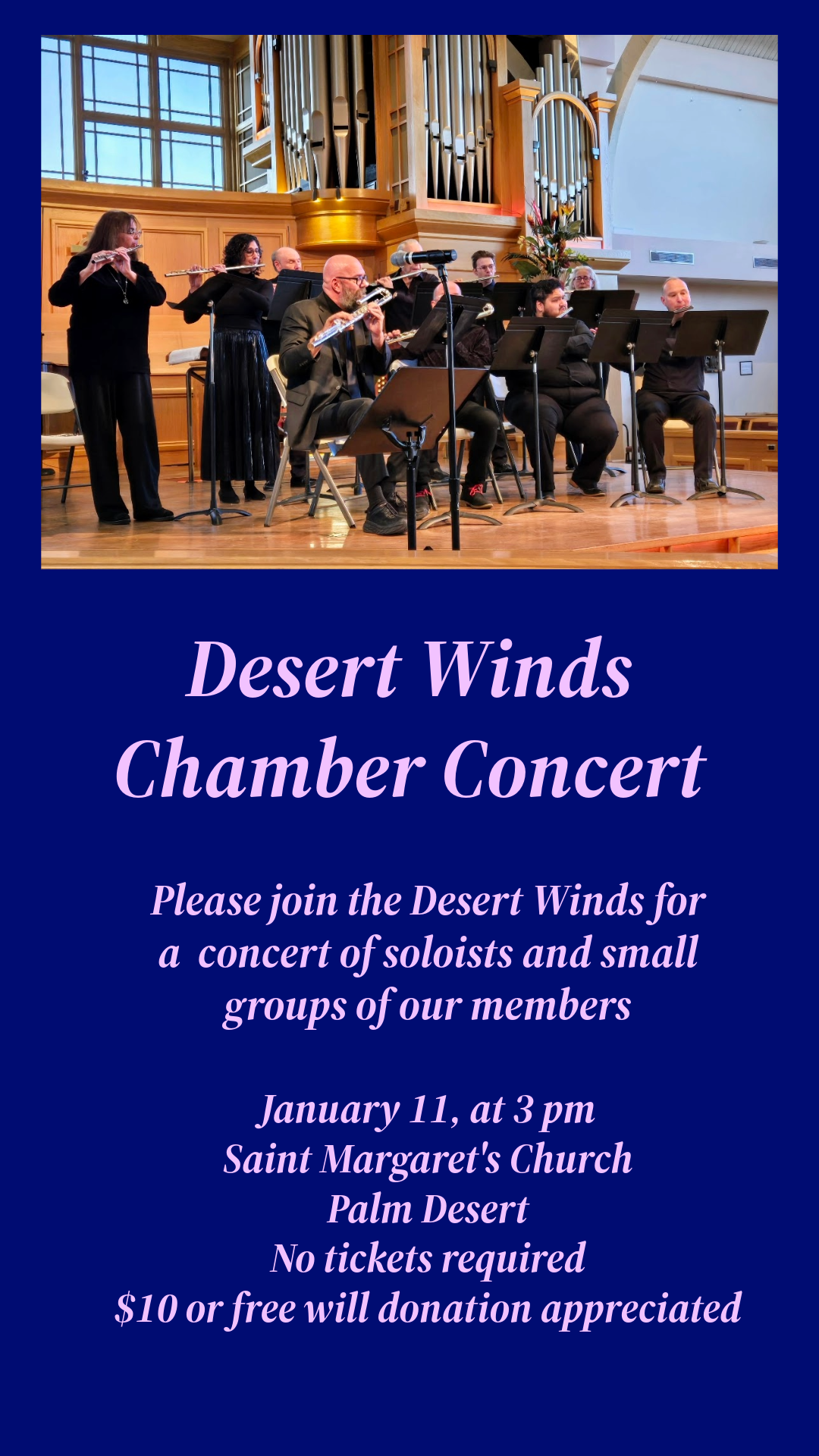 The Desert Winds Freedom Band is a non-profit community ensemble based in Palm Springs, California, founded in 2001 by Gary Moline. What began as a small group of 17 musicians has flourished into a vibrant organization of 115 members, featuring a symphonic band, jazz band, pep band, marching band, pop band, and various smaller ensembles. Alongside our concert performances, we take pride in being active participants in community events throughout the Coachella Valley.